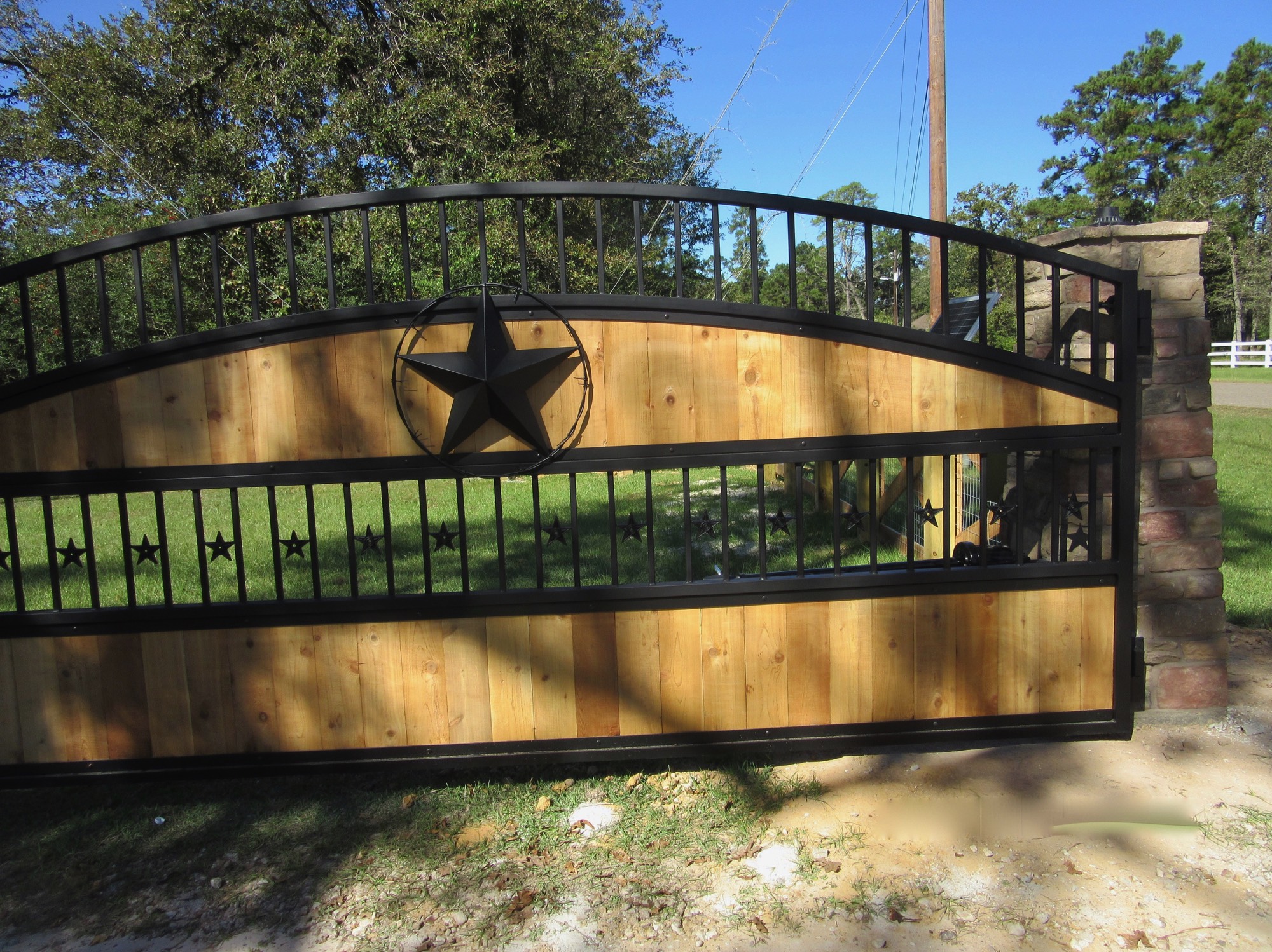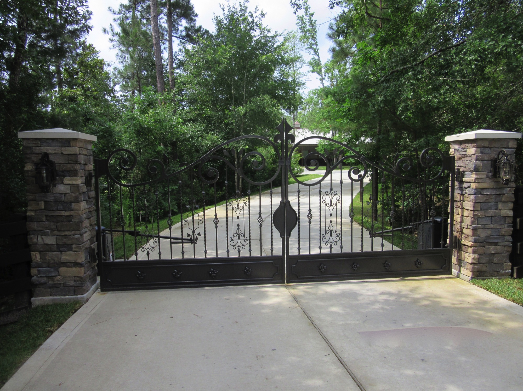 7. Custom Stone and Steel Gate with Lights 1