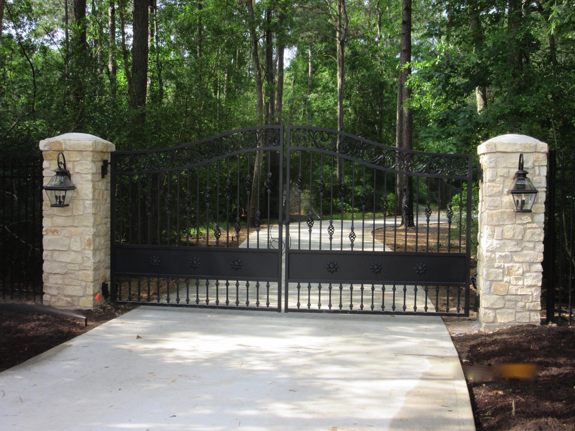 14. Custom Stone and Steel Gate with Lights 2